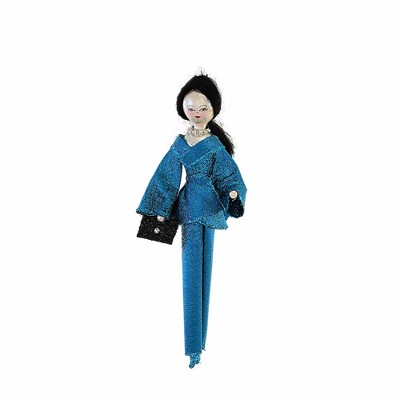 De Carlini Italian Ornaments 7.0 Inch Joelle In Metallic Glitter Blue Suit Tree Ornament , Ornament Italian Diva Shopper (1PC)
