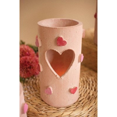 Heart Carved Clay Luminary Set of 4 Cozy Romantic Decor 8" Tall by Kalalou
