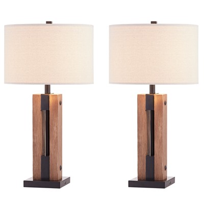 Maxax Brown Wood Metal Table Lamp,Rustic Industrial Desk Lamp for Bedroom Nightstand, Living Room