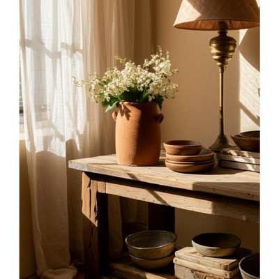 Vase Terracotta Pottery Handled Textured Matte Finish Casual Home Bedroom Office Decor - 22" Ivory & Tan
