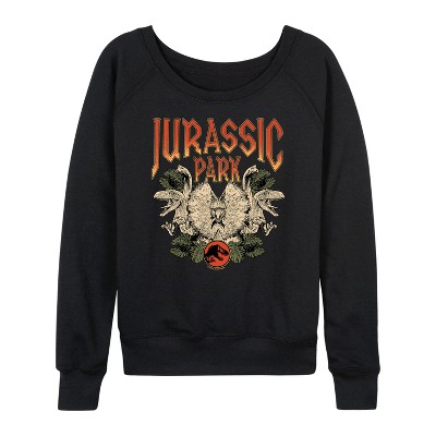 Women's - Jurassic World - Jurassic Park Dino Group Lightweight French Terry Wide Neck Long Sleeve Graphic Shirt