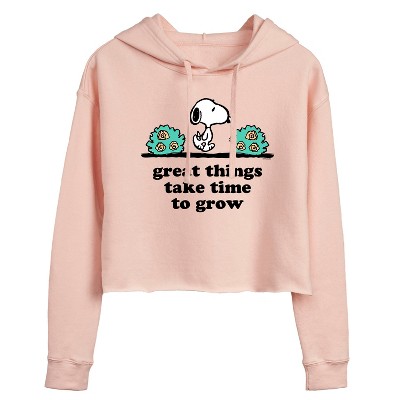 Women's - Peanuts - Great Things Take Time To Grow Cropped Graphic Hoodie