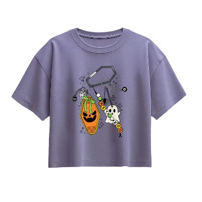 Girls' - Instant Message - Halloween Keychains Short Sleeve Boxy Graphic T-Shirt