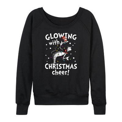 Women's - The Cat in the Hat - Glowing Christmas Cheer Lightweight French Terry Wide Neck Long Sleeve Graphic Shirt
