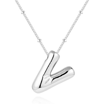 Chunky Balloon Initial Necklace 14K Gold Plated Non Tarnish Mom Gift Silver-V