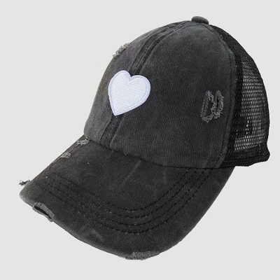 Anna-Kaci Women's Distressed Trucker Hat with Valentine Heart Patch