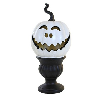 Transpac 10.75 In Pedestal Pumpkin Halloween Figurine , Lighted Halloween Decor (1PC)