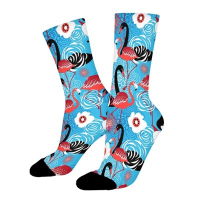 Bright Floral Flamingos Swans Women Printed Crew Socks Funny Funky Socks Soft Polyester Novelty Gifts for Artists Men