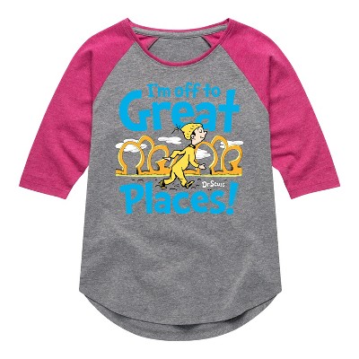 Girls' - Dr. Seuss - I'm Off To Great Places Shirt Tail Raglan Graphic T-shirt