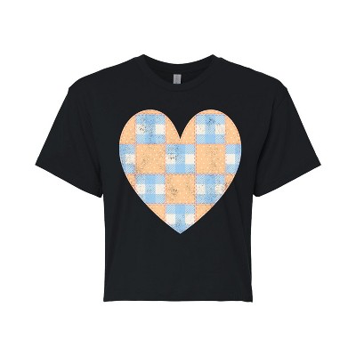 Women's - Instant Message - Patchwork Quilt Heart Cropped Graphic T-Shirt