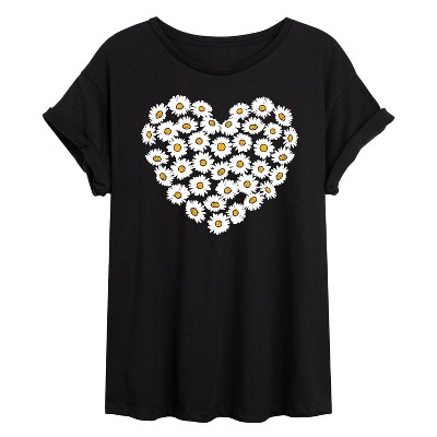 Women's - Instant Message - Daisy Heart Oversized Graphic T-Shirt