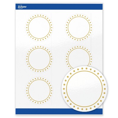 Avery 3" Diameter Labels, Gold Border with Gold Dots, 60 ct, Glossy, Gold Border with Gold Dots