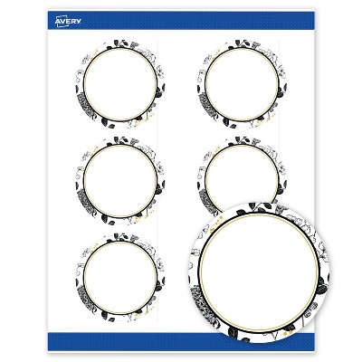 Avery Round Labels, 3", Gold Arch & Black Florals Design, Matte
