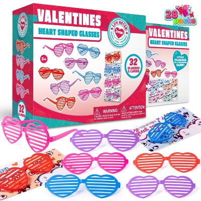 Joyfy 32 Pack Valentines Day Heart Shaped Glasses with Gift Card, for Valentine's Party Favor, Classroom Exchange Prize Supplies
