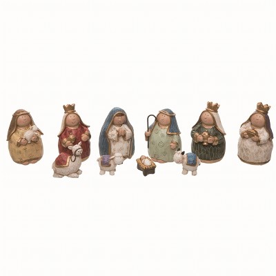 Transpac 4 in Multicolor Christmas Carved Nativity Figurines Set of 10 Decorative Polyresin Holiday Decor