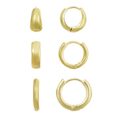 Adornia 14k Gold Plated Huggie Hoop 3-Piece Earring Set