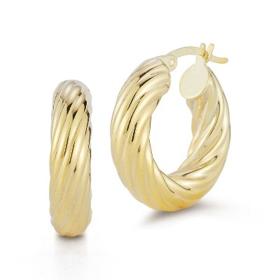 Bella Silver Sterling Silver 28mm Twist Hoop Earrings - Gold Plated - Gold
