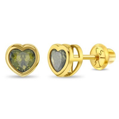 Girls' Heart Bezel Simulated Birthstone Screw Back 14k Gold Earrings - In Season Jewelry