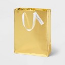 Wrapables Christmas Reusable Gift Bags, Glossy Non-Woven Bags with Handles for Holiday Gift Wrap, Weddings, Parties (Set of 8), Gold