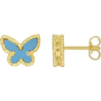 14k Yellow Gold 8mm Turquoise, Malachite or Mother of Pearl Butterfly Studs Gemstone Earrings