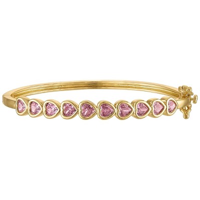Junior Jewels 14K Gold Over Brass Cubic Zirconia Pink Hearts Bangle Bracelet