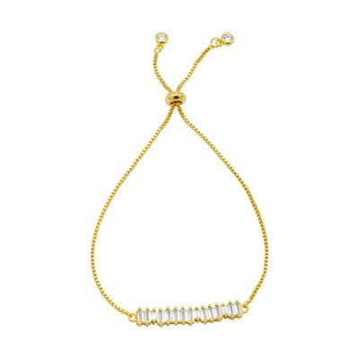 Adornia 14k Gold Plated Bolo Bracelet With Baguette Crystal Bar