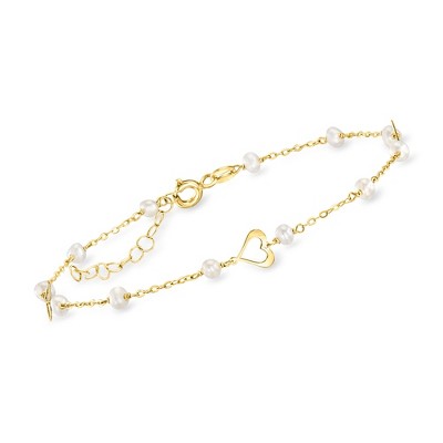 Pure Collection by Ross-Simons 3-3.5mm Cultured Pearl Station Lumachina-Chain Anklet in 14kt Yellow Gold Size 9