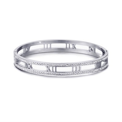 Adornia Tarnish Resistant Silver Roman Numerals Bangle