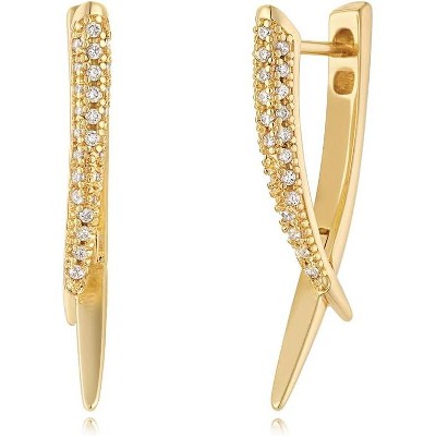 Guili 14K Gold Plated U-Shaped Drop Earrings with Clear Cubic Zirconia Feature a Sleek, Inventive Design for a Modern Look with Elegant Sparkle