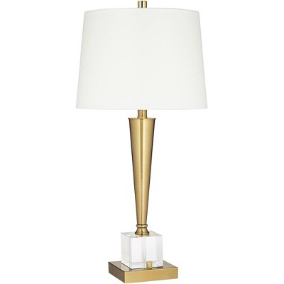 Vienna Full Spectrum Valerie Modern Table Lamp with White Riser 28" Tall Clear Crystal Fabric Shade for Bedroom Living Room Bedside Nightstand Office