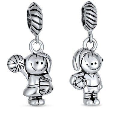 Bling Jewelry Set of 2 Cheerleader & Soccer Player Dangle Charm Bead Sterling Silver European Bracelet