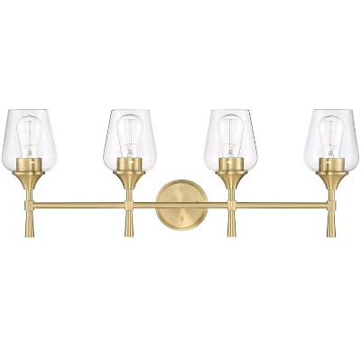 Progress Lighting Aiken 4-Light Bath Vanity Light, Vintage Brass, Clear Glass Shade