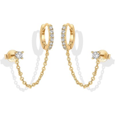 14K Gold Plated Cubic Zirconia Cuff Earrings Huggie Stud