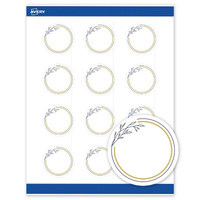 Avery Labels, 2" Diameter, Matte White, Gold & Navy Border w/ Florals, 120ct