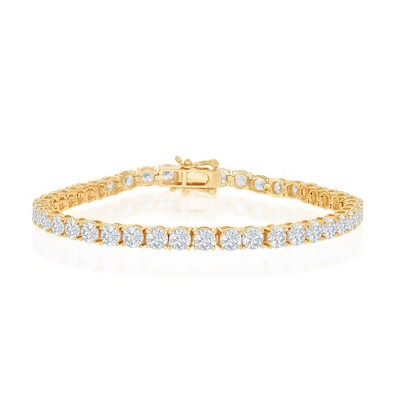 Bella Silver Sterling Silver, CZ Paperclip Bracelet - Gold Plated - Gold - 7+1 Inch