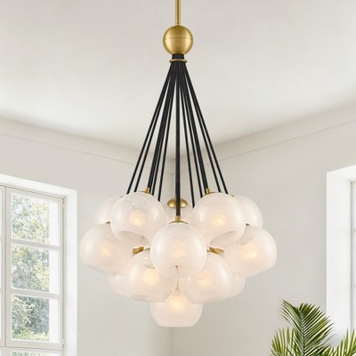 LamQee Mid Century Bubble Chandelier, Milk Glass Globe Cluster Chandelier Light Fixture Large Hanging Pendant Lighting