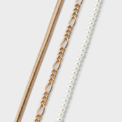 Cross and Pearl Layered Necklace 2pc Set - Wild Fable™ Gold