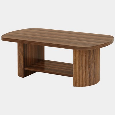Costway 2-Tier 24" Round Coffee Table w/ Oval Swivel Brackets & Reeded Tempered Glass