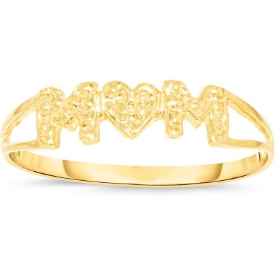10k Yellow Gold 4.1mm MOM Heart Textured Filigree Ring