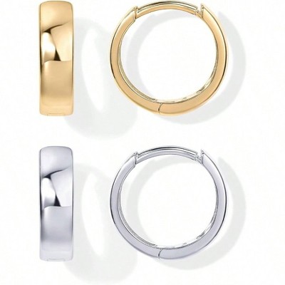 Gold & Silver Huggie Hoop Earrings with CZ, 14K Gold Plated for Women.