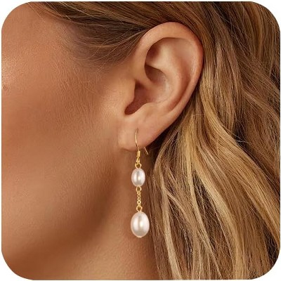 925 Sterling Silver Double Pearl Drop Earrings,Leverback Irregular Pearl Hypoallergenic Earrings