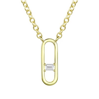 Bella Silver Sterling Silver, Toggle CZ Paperclip Necklace - Gold Plated - Gold - 17 Inch