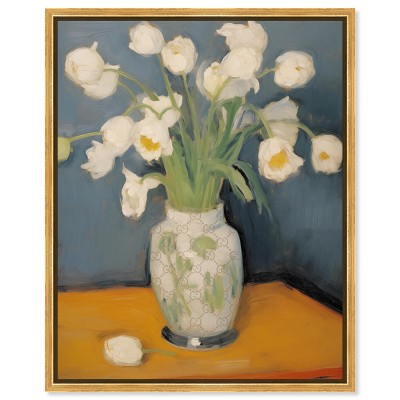 Art Remedy White Flowers in Vase Vintage Farmhouse Framed