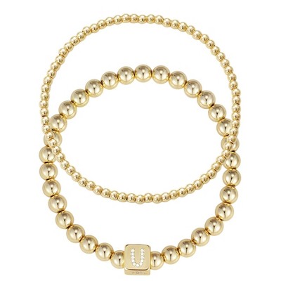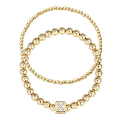 ADORNIA Gold Set of 2 CZ Initial Cube Bead Bracelet