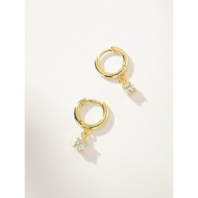 Steeltime Ladies brass micro pave half caged hinge mini hoop with clear cz & post piercing. Color Options: White, Rose Gold