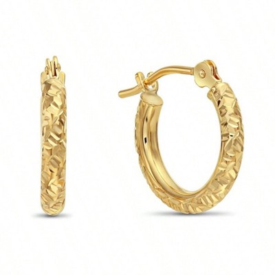 Yellow Gold Hand Engraved Diamond - Cut Hoop Earrings Elegant and Charming Style