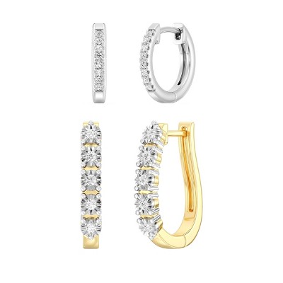 GILDED 1/6 ct t.w. Lab-Grown Diamond Pavé Two-Hoop Earrings Set in 14KT Gold Plated Silver & Sterling Silver