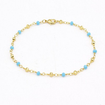 RMZ GOLD NYC 18K GOLD FILLED HIGH POLISH FINSH HIGH FINISH POLISH TURQUOISE BALL ANKLE BRACELET
