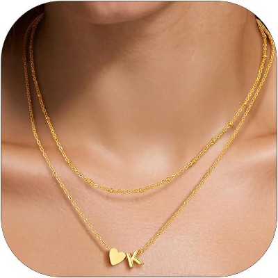 SmallRig Layered Heart Initial Necklace for Women, Stainless Steel/18K Gold Dainty Letter Charm