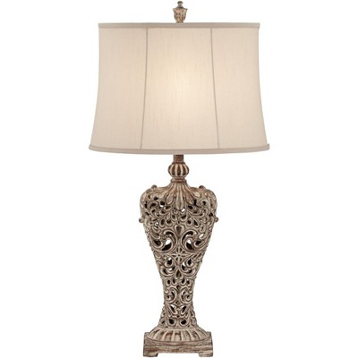 Barnes and Ivy Elle Traditional Table Lamp 33" Tall Antique Gold Florentine Off White Oval Shade for Bedroom Living Room Bedside Nightstand Office